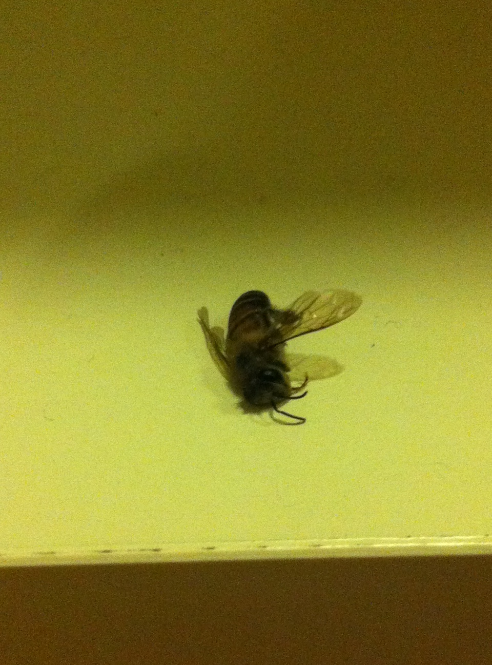 So we came home from work to stories of the bees’ invasion and both having to shower in my bathroom instead. We were to have a mass burial last Wednesday night, for the scattered little bodies here and there (in their attempt to fly out to freedom) but homework got in the way.
