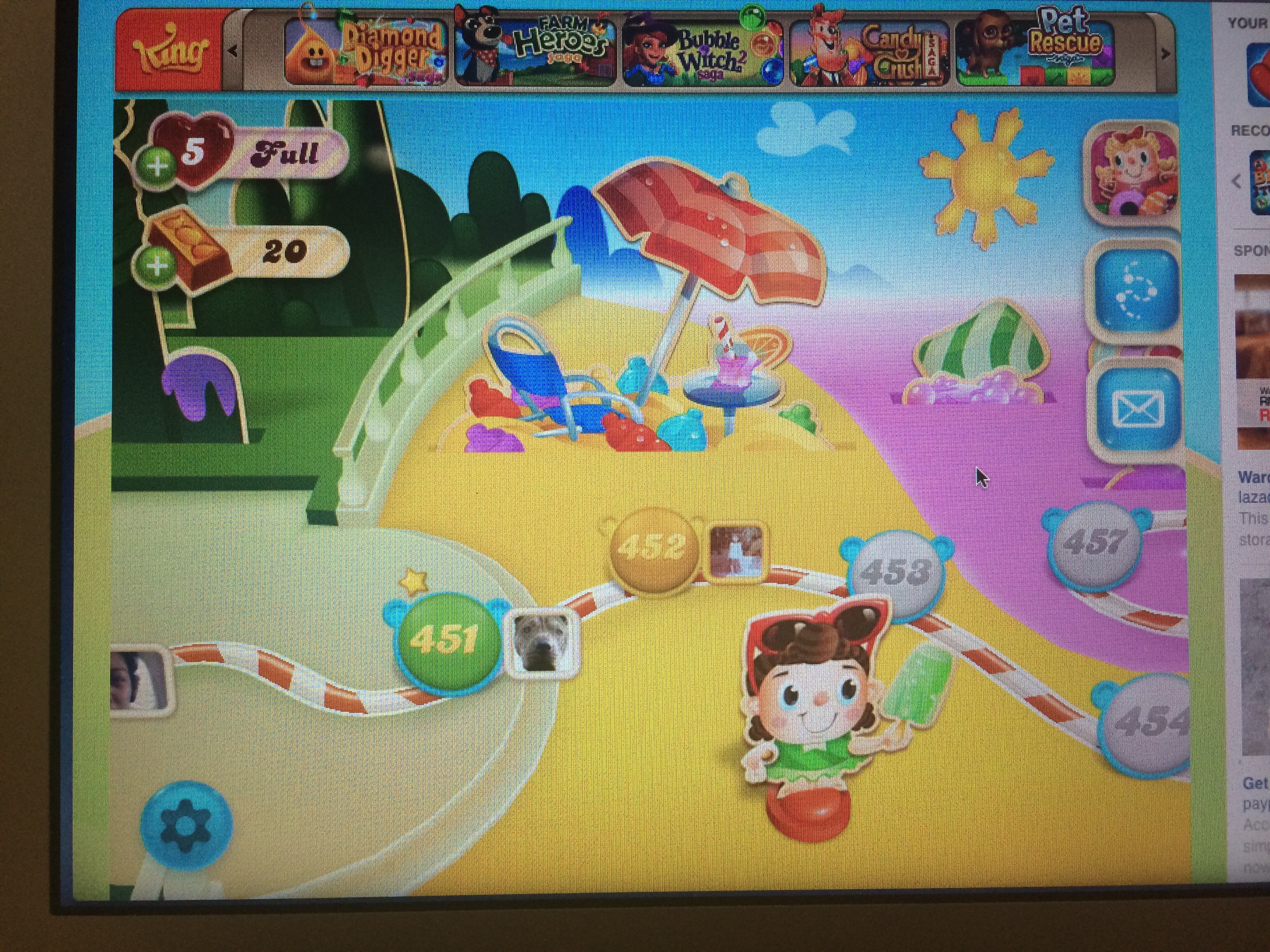 I stopped playing Candy Crush Soda for a few days because there has been no updates. But last night, I could not resist and peeked into the game in Facebook on the laptop.What do you know? I moved. Yay… so I played on and managed to progress to Level 452.