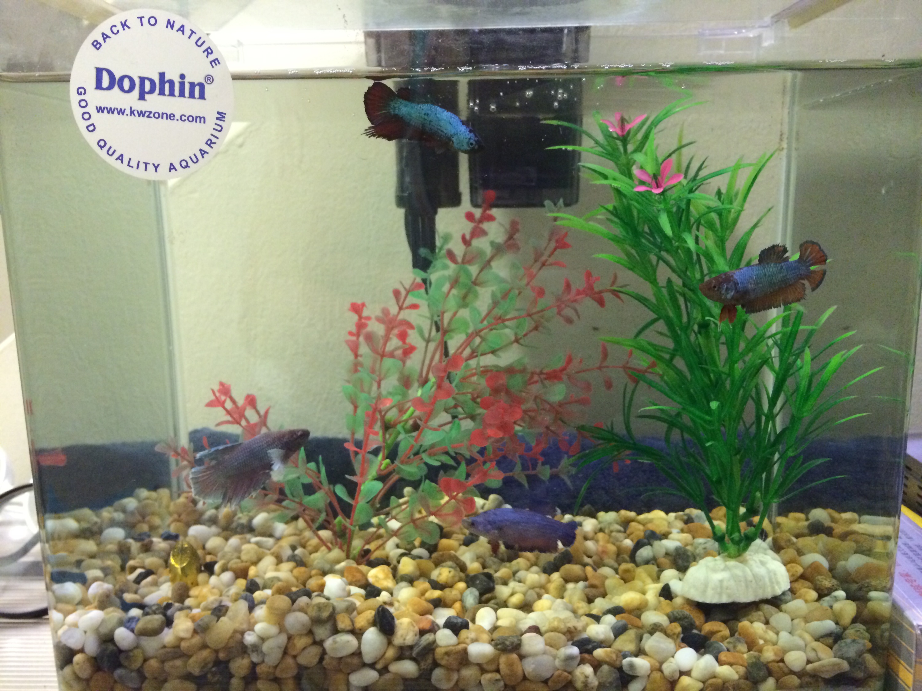 Over the weekend, the status finally changed! Hubby bought some new fishes; this time some pretty looking Betta, otherwise known as fighting fish and the four new residents are enjoying their new home.