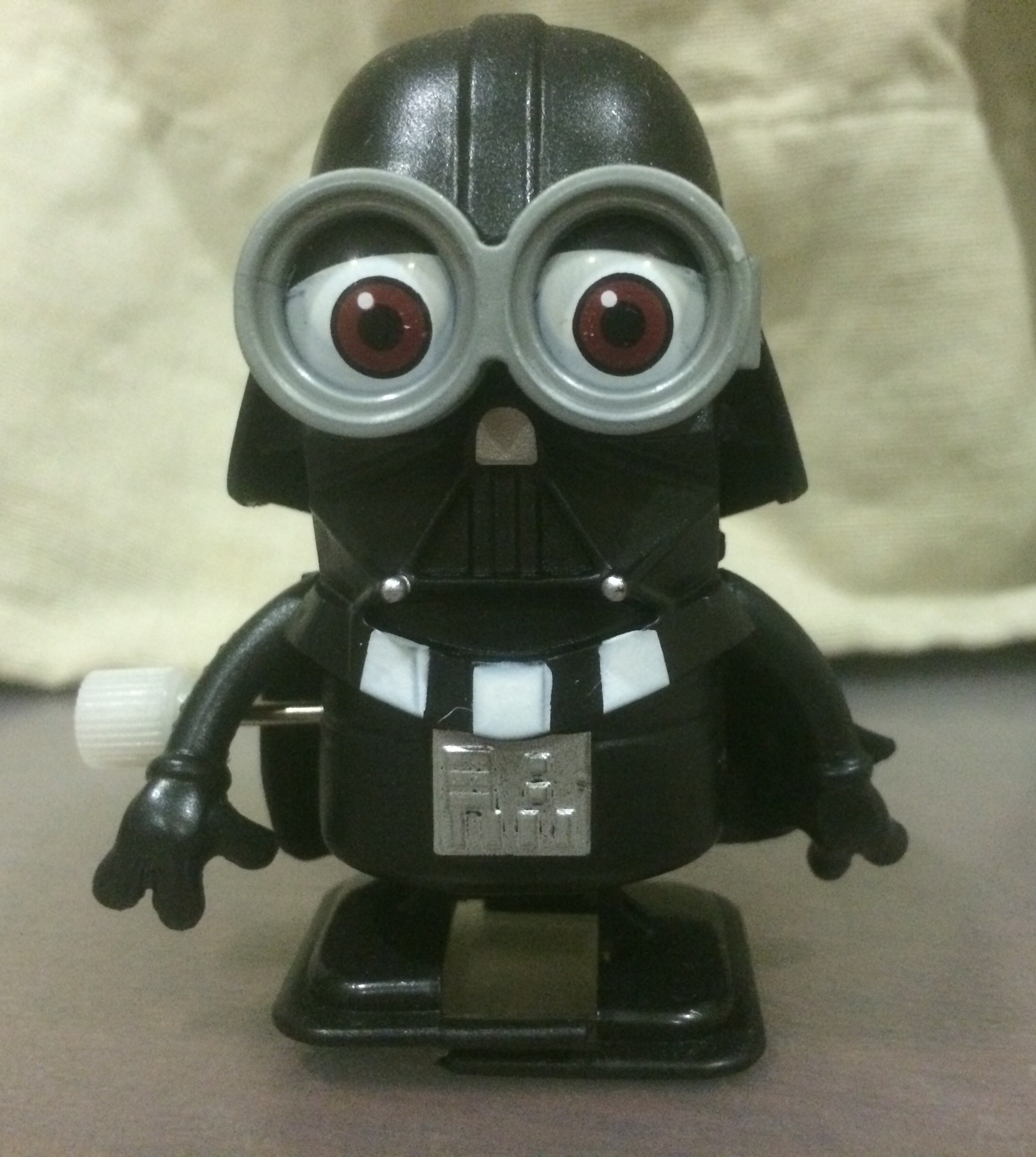 Thank goodness it wasn’t necessary because when we stepped out of the sandwich shop, the weekend flea market vendor several steps away had Darth Minion on display. I quickly grabbed it before the kid in front of me could. It was evil.