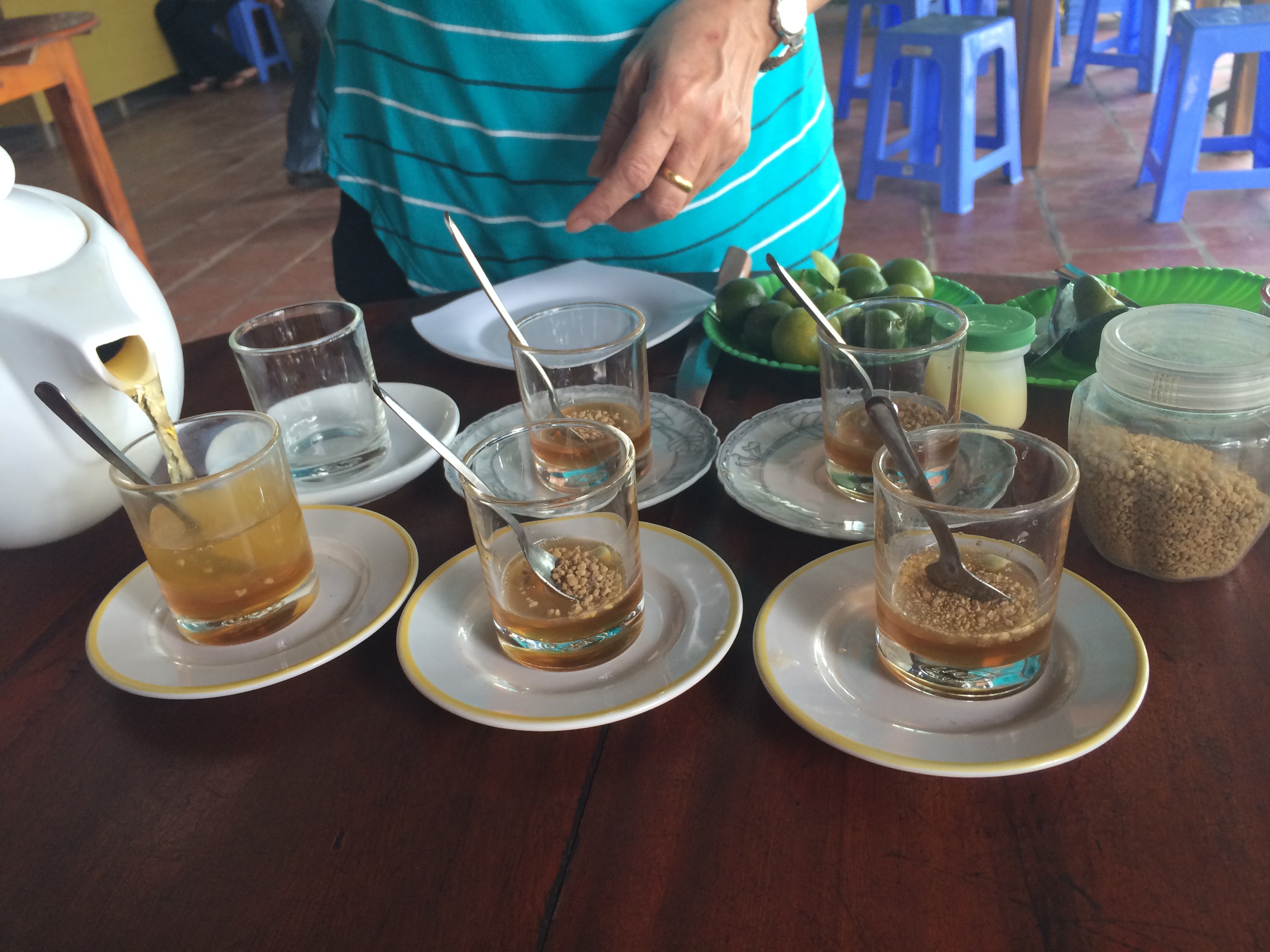And we had quite a morning at the Mekong River. The first stop was at the Eco Bee Farm and we sampled some honey. And had some fruits while being serenaded by the local singers at the second stop before we took the sampan.