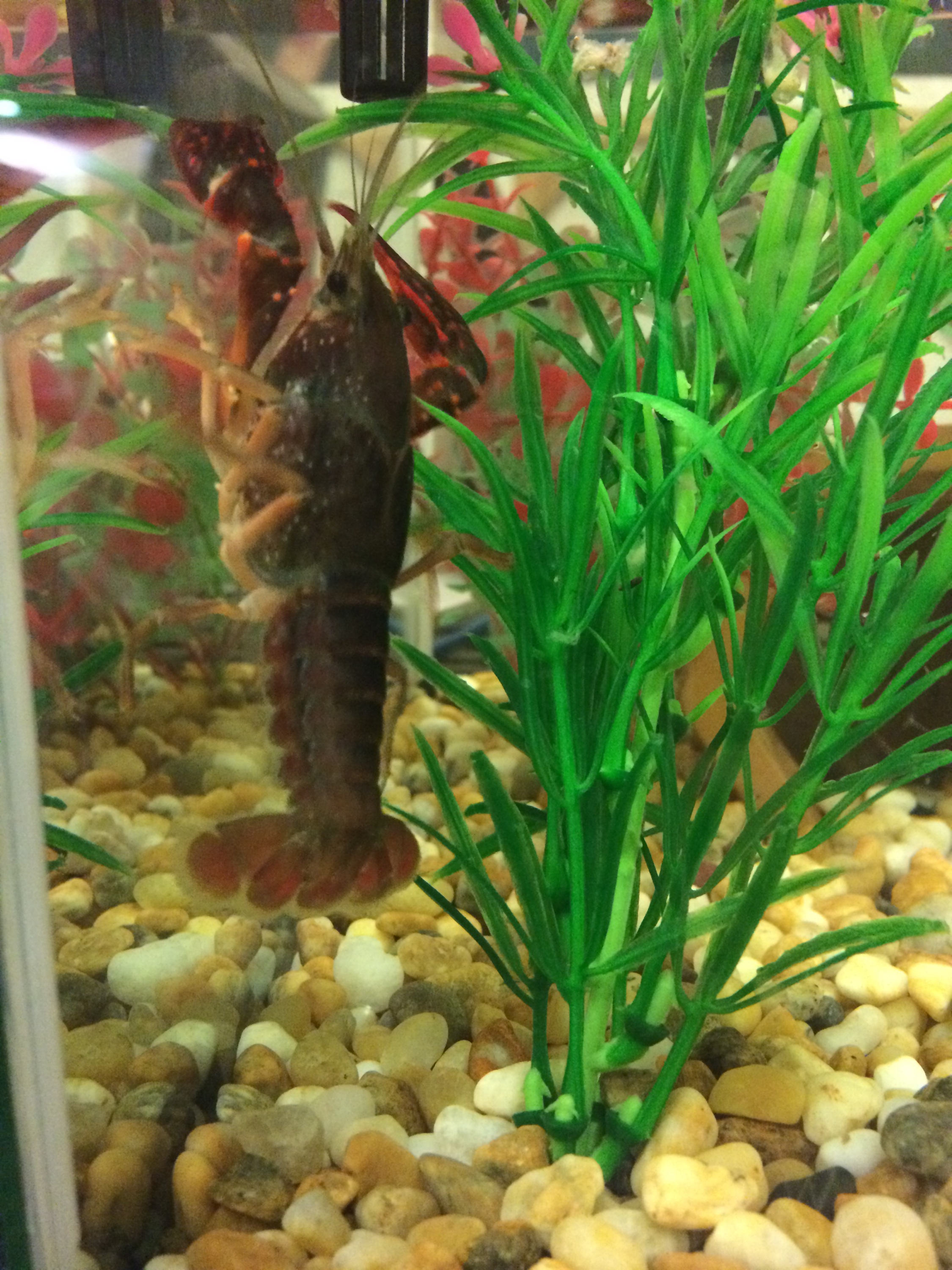 The Food Science student was able to identify the crayfish anatomy because she had taken a class that required her analyzing crayfishes. One evening we were just admiring Tuna, and M1 looked closely at its underside before pointing out that Tuna’s a boy! We were surprised.