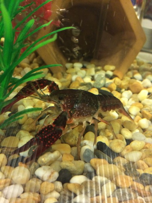 The Food Science student was able to identify the crayfish anatomy because she had taken a class that required her analyzing crayfishes. One evening we were just admiring Tuna, and M1 looked closely at its underside before pointing out that Tuna’s a boy! We were surprised.