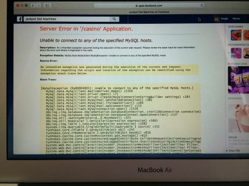 I have been seeing server this error script since Friday upon launching Jackpot Slots on Facebook. So for real this time? My only regret is that I did not see my final last points scored properly. Oh well.