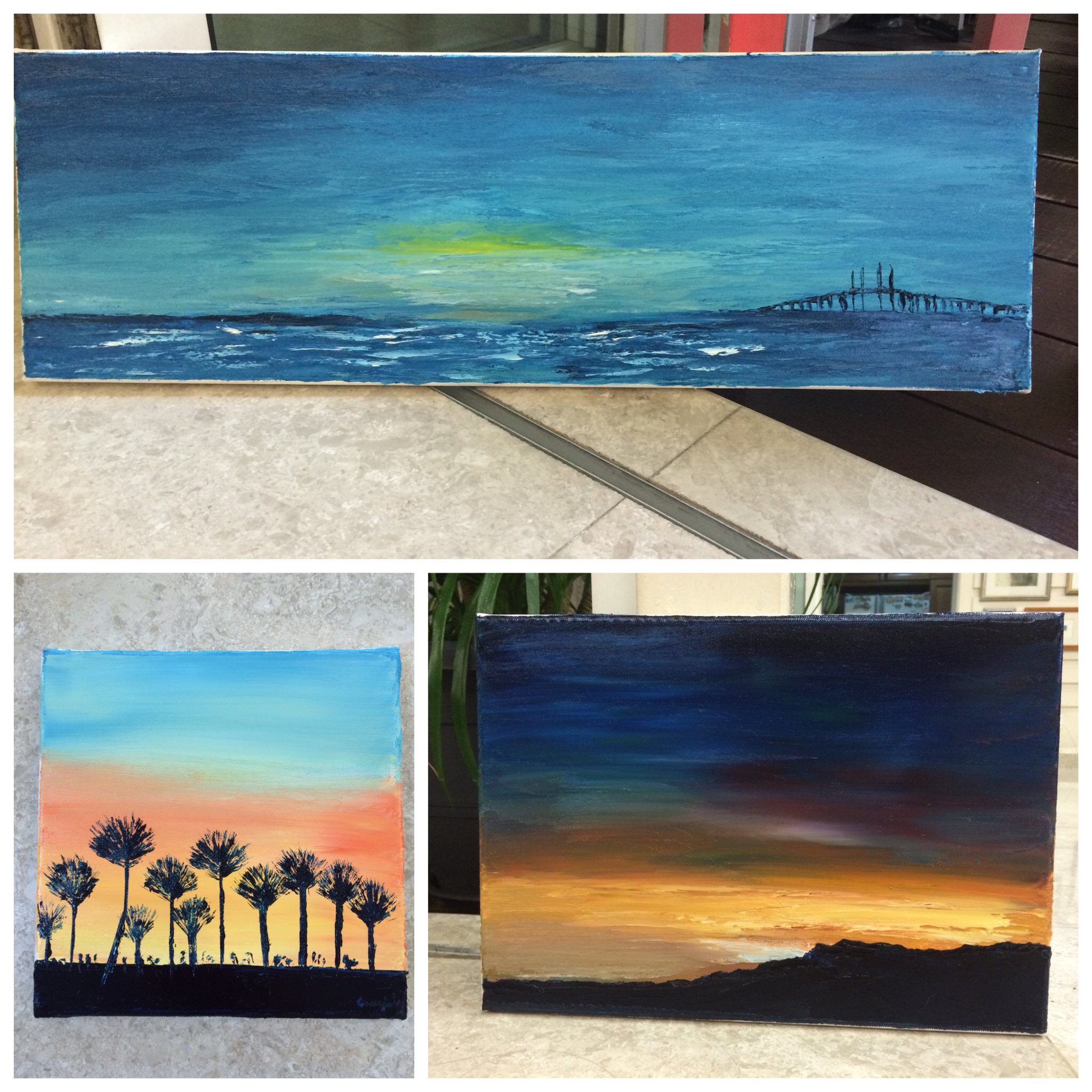 Thoughts of Monet gave me a push to paint for two consecutive Sunday afternoons. The first piece at 8”x24” the weekend prior took two hours only. The second time, I did two pieces – a 10″x14” and a 10”x10” which didn’t take long to complete either. It was rather therapeutic on both occasions.