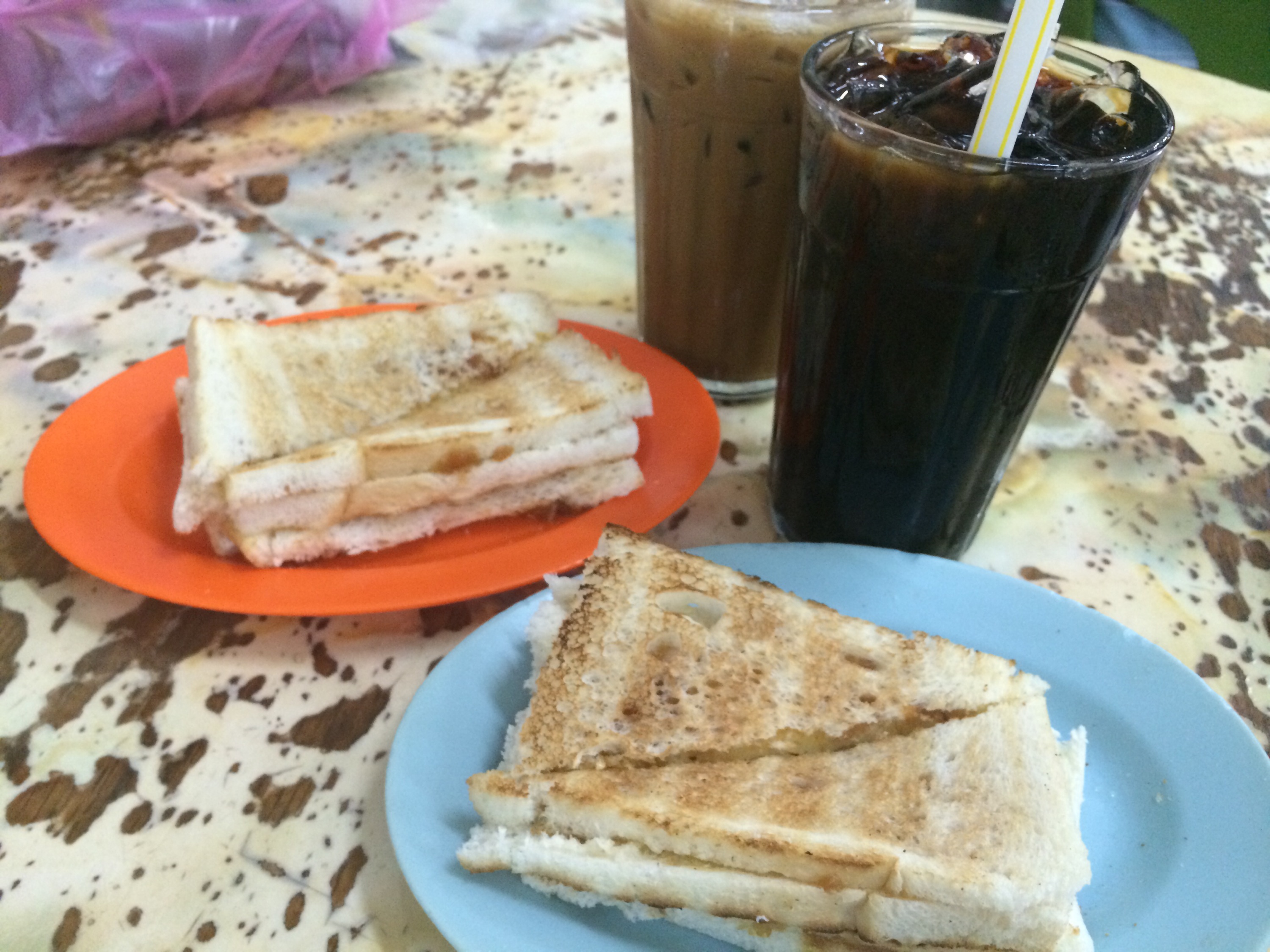 Iced coffee, iced milk coffee and toast before we head home!
