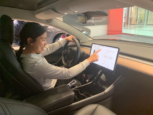 We hung out at the mall and the Tesla showroom caught our eyes. There were two cars – the Model 3 and the Model X. The X was way, way cool with its super huge double iPad touchscreen panel and wing doors.