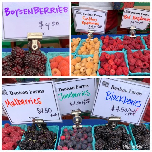 I bought a jar of Chardonnay Pear jam after taste-testing a couple of exotic combinations. We also bought a pound of roasted hazelnuts, some pastries and a tray of fruits (Mulberries, Golden Raspberries and Gooseberries) to eat in the car.
