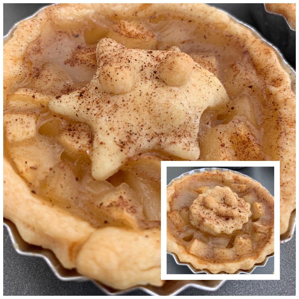 The first batch of only five tarts was accidental because there was some dough left from making something else. And since we had apples, why not bake apple tarts? It was experimental as something was right and something was off: the filling was good, the crust needed work.