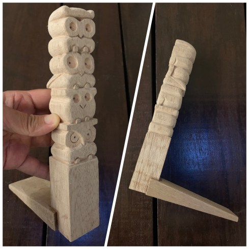 In between working on the DIY homes, I decided to complete the Monument piece. I knew what I had to do if it was to be converted to become a door stopper. I couldn’t just glue the carving to the wedge as is because it won’t be strong enough to hold together.