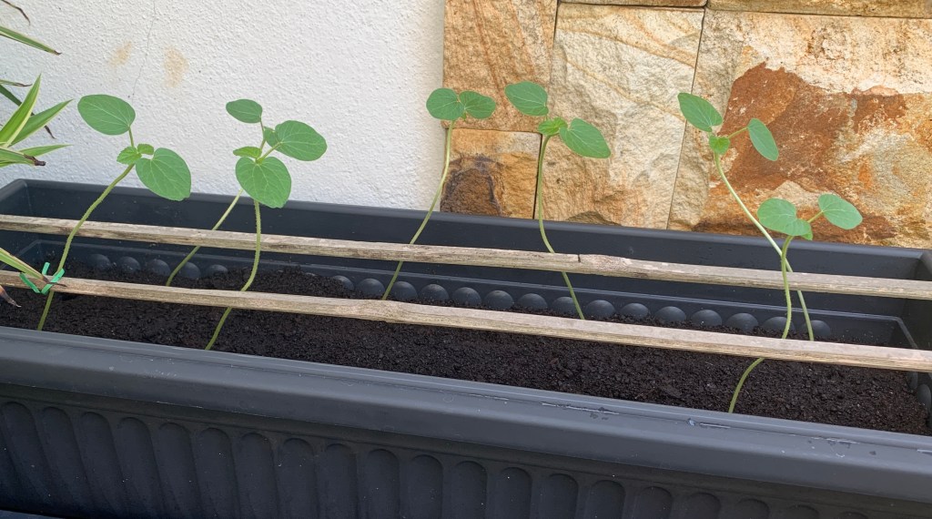 And the mini brinjals in the little nursery have started to show some progress as well. Nine out of nine seeds survived! When they are more stable, we will transfer them into the other planter’s box.