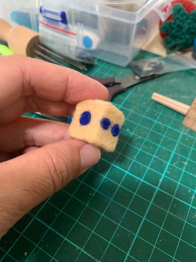So simple yet, so time-consuming, I found myself seated at my little workstation and poking away at the wool for some time. My first piece, following the tutorial, came out a little out of proportion, but I got the hang of things.