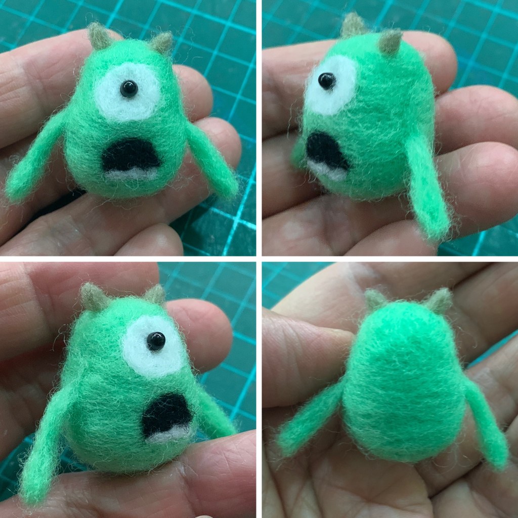 After the thrill and satisfaction of completing the Totoro character, I started on another felting piece. This time, it is my interpretation of Mike from the animation movie – Monsters, Inc.