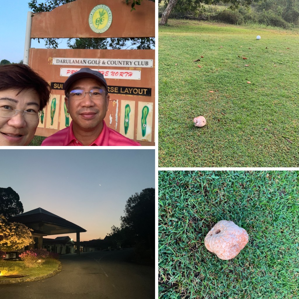 But a trip back to hubby’s hometown is not complete without playing some golf! We managed to play two games. And we had the golf course all to ourselves as there were hardly any other golfers at all. You can tell by the absence of golfers when the tee box has a giant mushroom (in the foreground) as big as the tee box marker (in the background)!