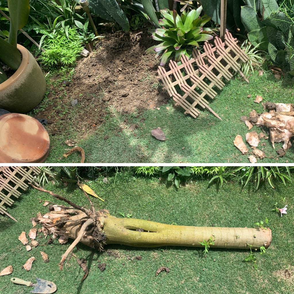 Last week, hubby finally removed the stump of our last papaya tree. It has been sitting on precious land while we are undecisive about what to plant there. Perhaps we can transfer the little papayas from the nursery, or the fig plants can have a permanent spot instead of being in a pot.