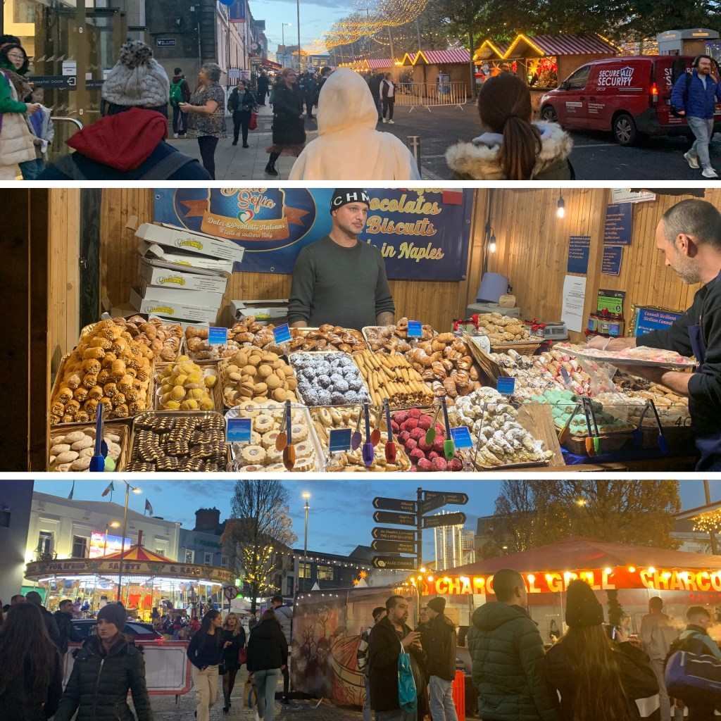 We arrived at Galway by 3.30 pm, and just nice to check into our hotel. After a short rest, we headed into the town center. We were delighted to discover a Christmas fair at Eyre Square with things to see, buy, and food to savor.