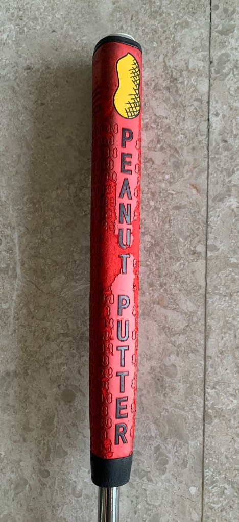 I was horrified to discover the grip of my Peanut Putter shedding when we were away for the last two games! It was fine just last week before the trip. I don’t know how or what happened, but I am dismayed by the unexpected deteriorating condition.