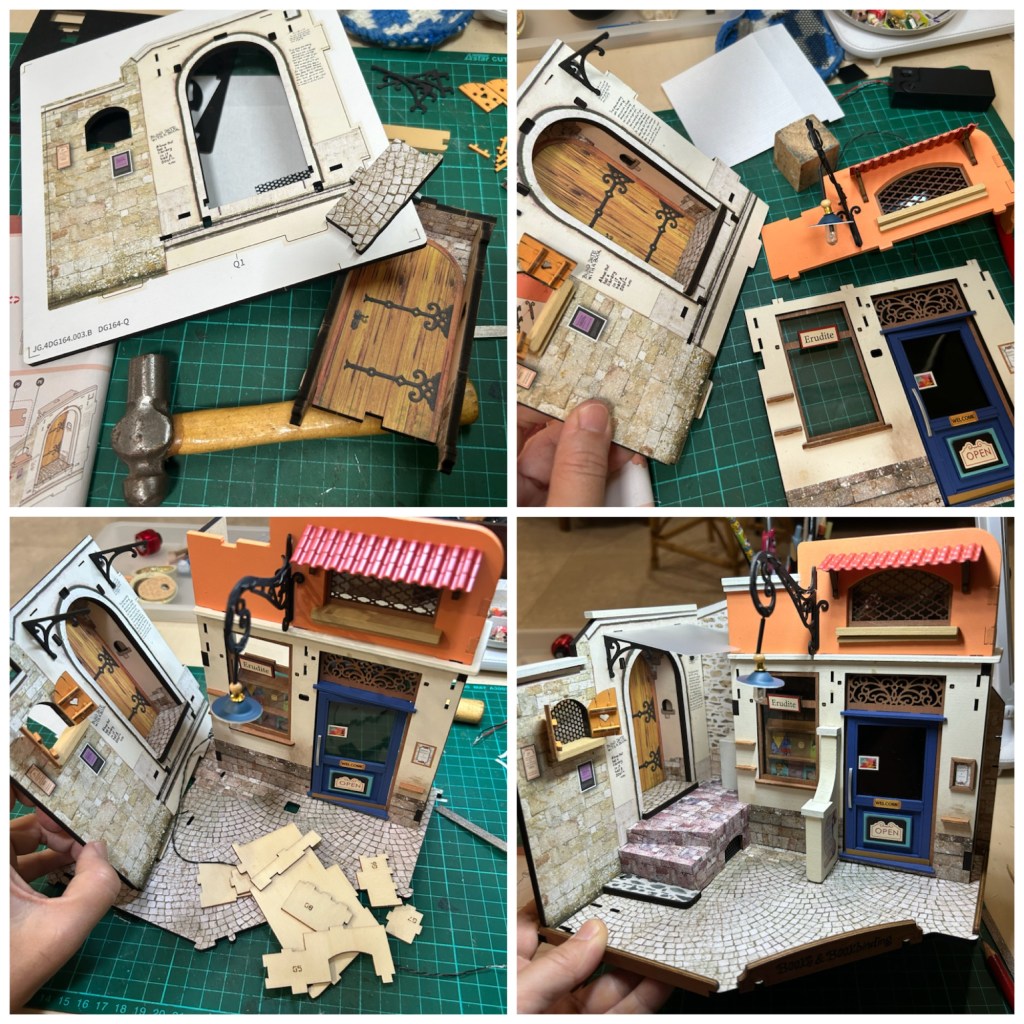 Anyway, this kit is definitely an improvement from past kits because I have yet to use glue to bind pieces to become one. Most wood pieces now have interlocking joint extrusions, a feature absent in earlier kits, especially for the walls and flooring. This new feature makes connecting the pieces effortless! But I use a hammer, though–instead of glue–to ensure the interlocking is secure.