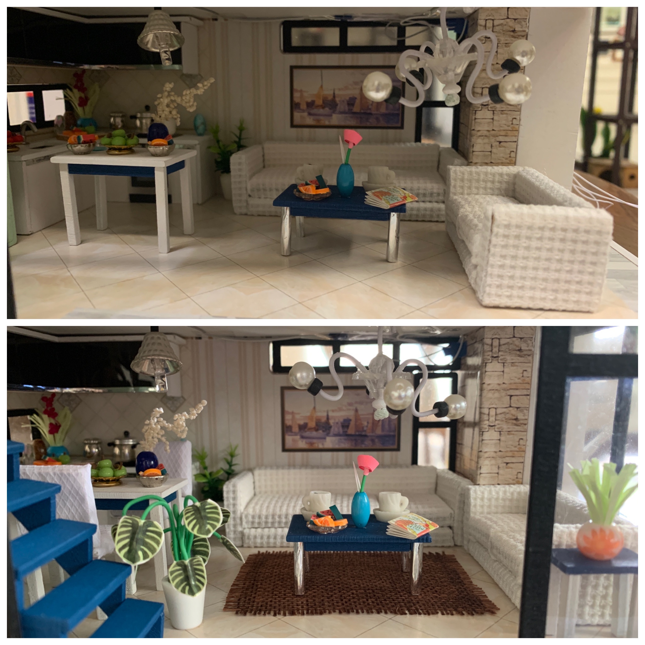 Top: Chandelier was off; bottom: my pretty ground floor