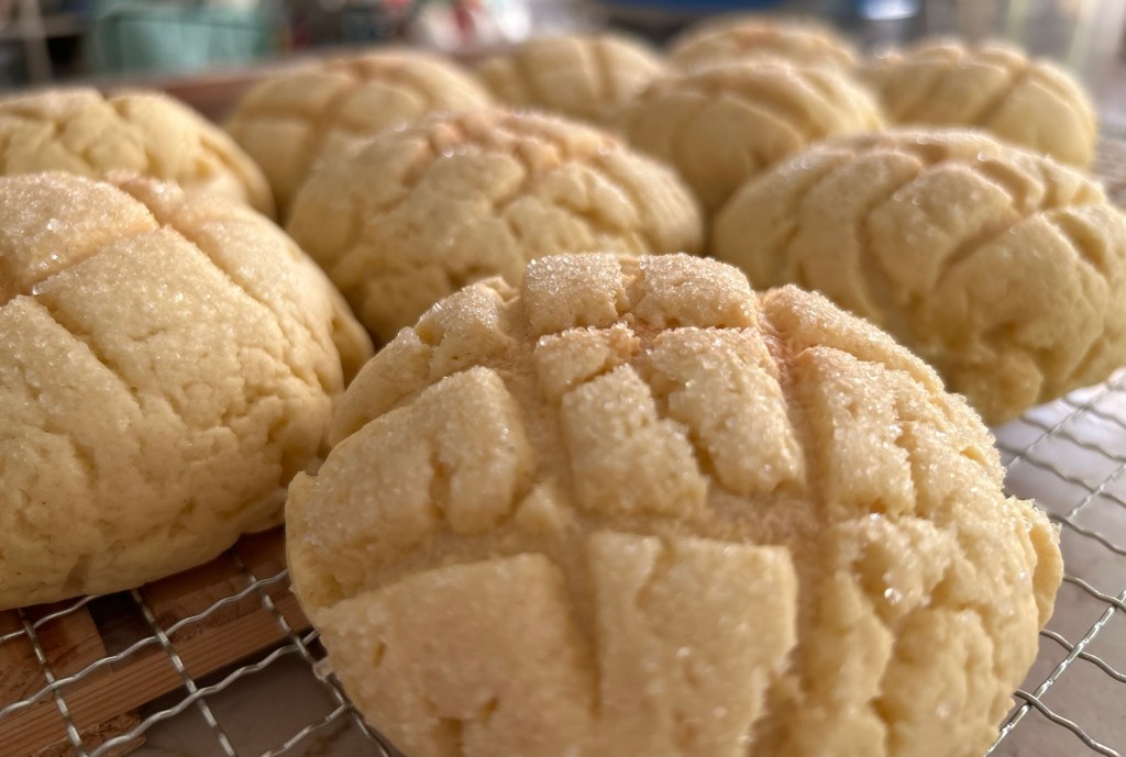 Two days ago, M1 had the urge to bake. And out came the kitchen stand mixer after so long. I came home from golf to find these lovely melon buns sitting on the counter to cool. Not only were they gorgeous to look at, but they tasted good. Yum!