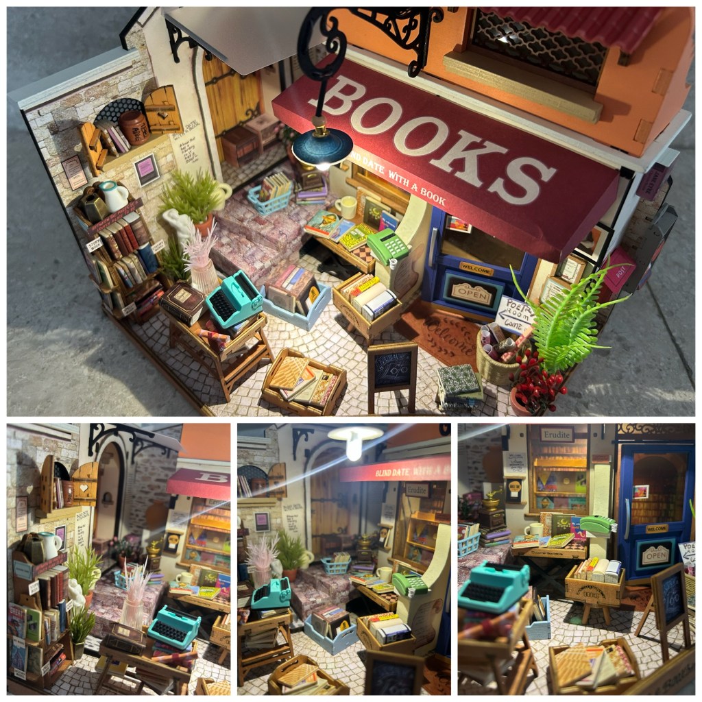 Leaving it on the table will subject the bookshop to collecting dust in no time if I don’t cover it up. So, I ordered some display casings to protect the completed kit from dust. They should arrive soon.