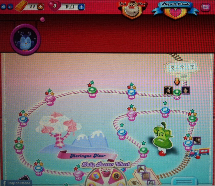 Back to Crunchy Courtyard, I quickly obtained my tickets and am now at Level 677, which is a good thing because Level 451 in Farm Heroes has proved to be the mother of all frustrations! Stuck there for so long, Candy Crush is now providing solace.