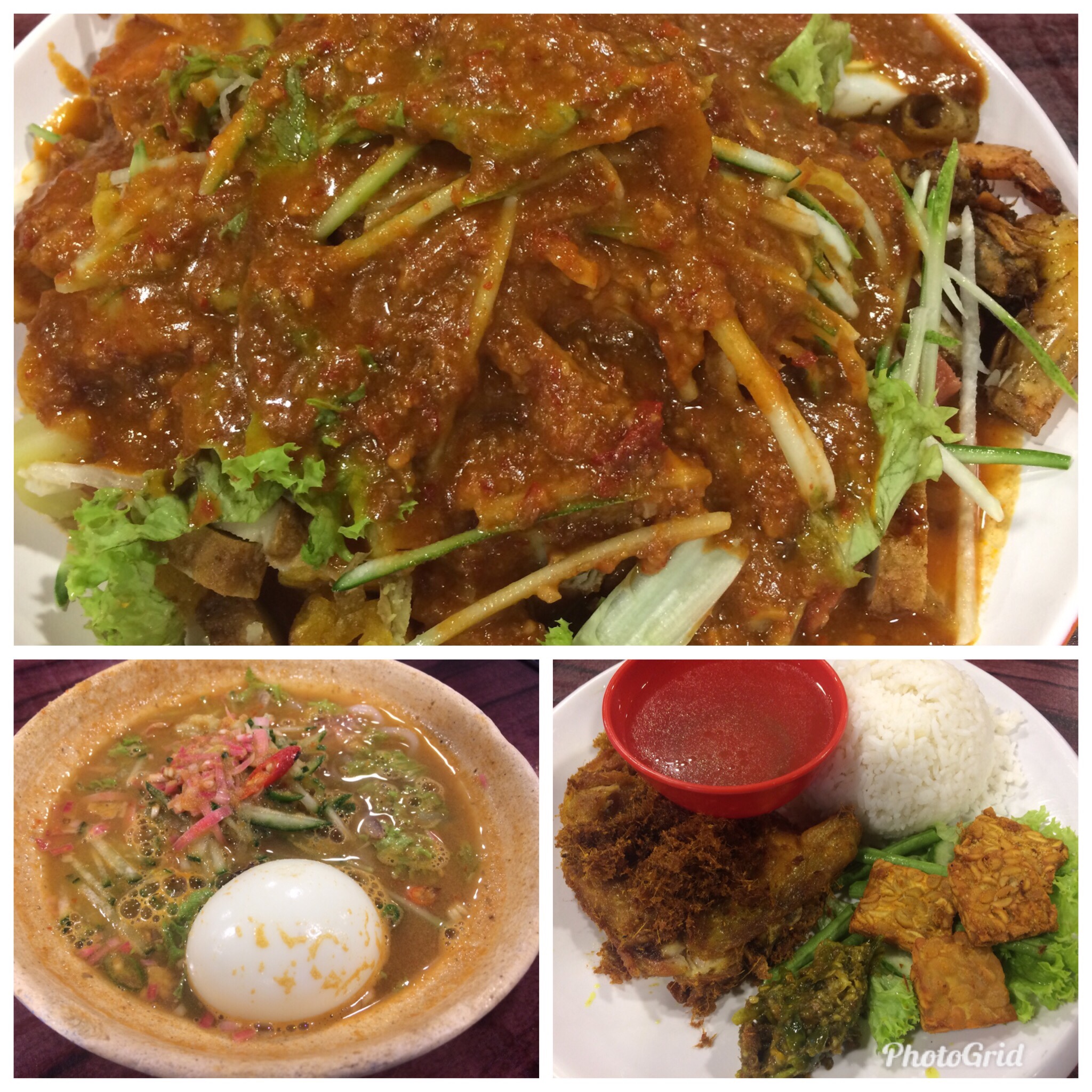 Pasembur Special (top), Assam Laksa with Egg (bottom left) & Ayam Penyet Special (bottom right)