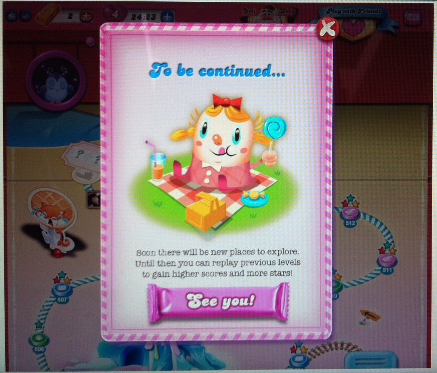 Eventually, I did pass Level 515 and am now at Level 517 while for Candy Crush, another set of tickets came for me to go on to Toffee Tower; I am now at Level 699. I have been alternating between devices, using both the iPad and the laptop.