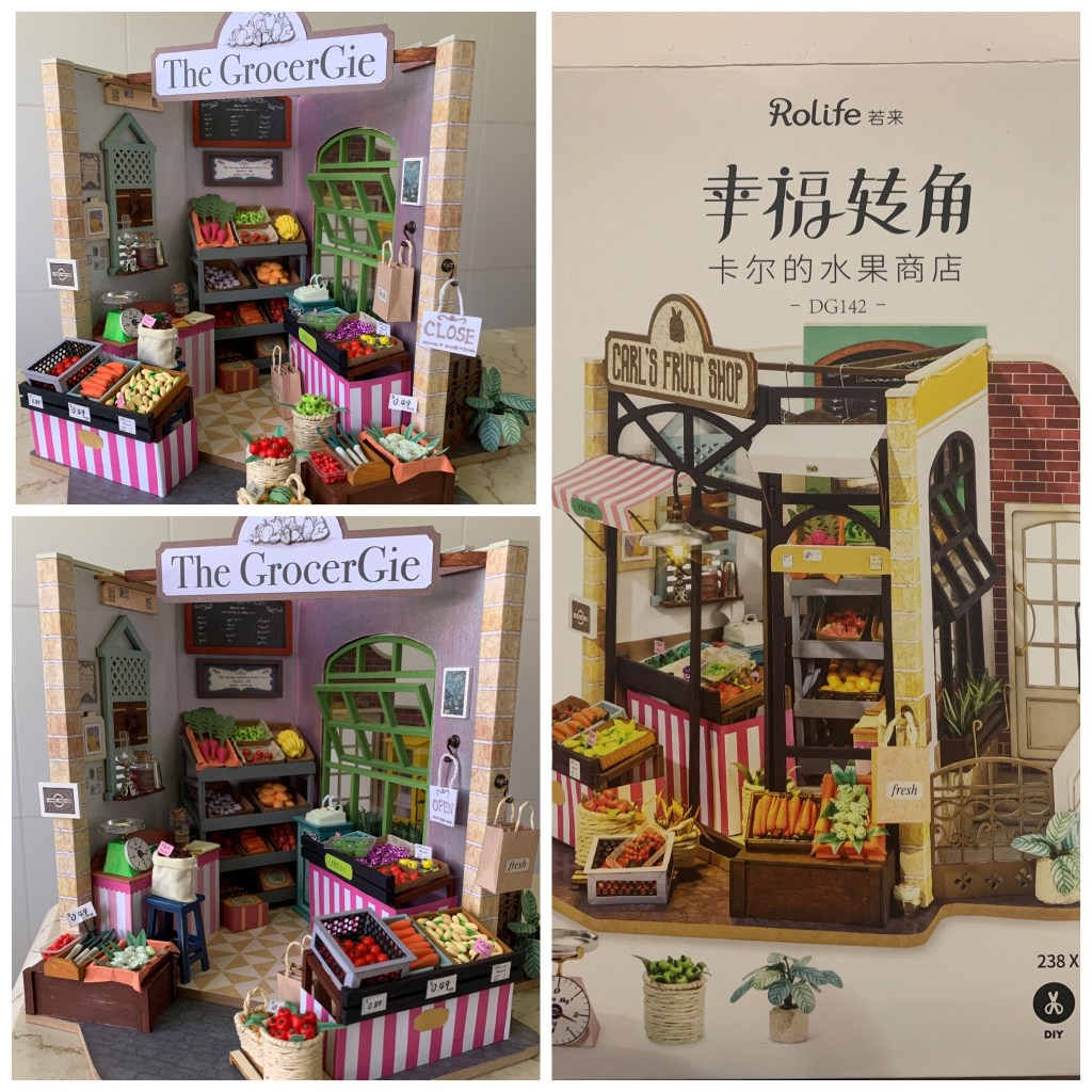 Leaving it on the table will subject the bookshop to collecting dust in no time if I don’t cover it up. So, I ordered some display casings to protect the completed kit from dust. They should arrive soon.