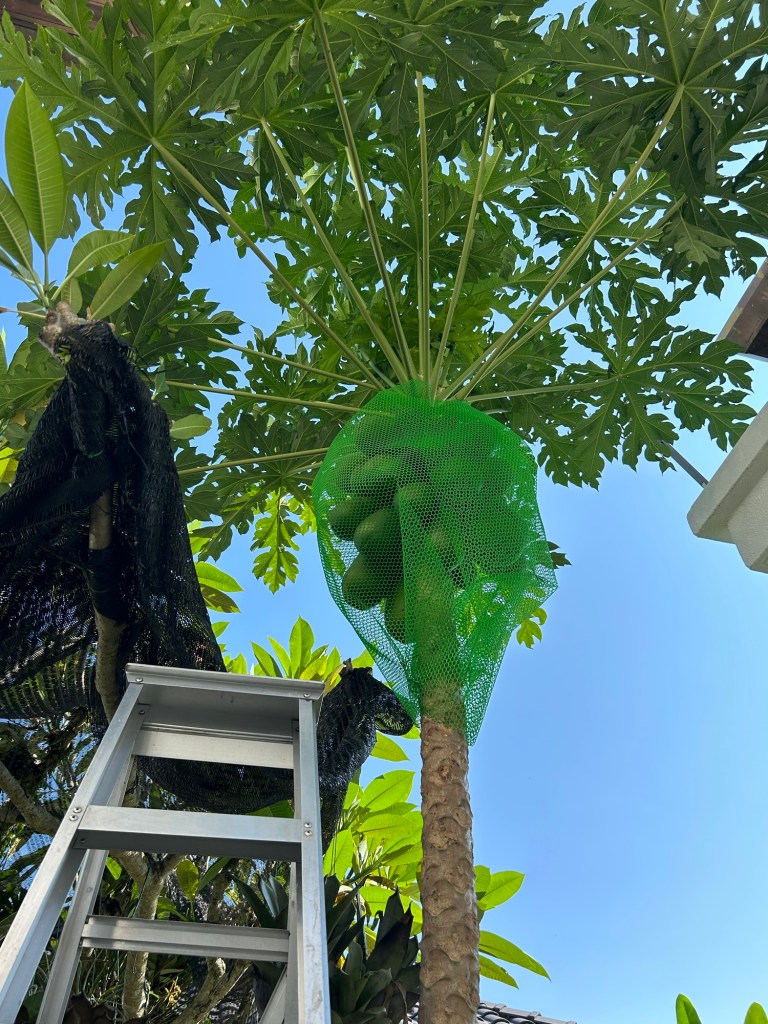 So we had no choice but to cut the fruit to save it, despite it not being ripe yet. The other worrying situation was the garden intruders – garden squirrels or worse, the free-roaming civet cat! If we don’t save the fruit for ourselves, these critters would help themselves to a free fruit buffet.