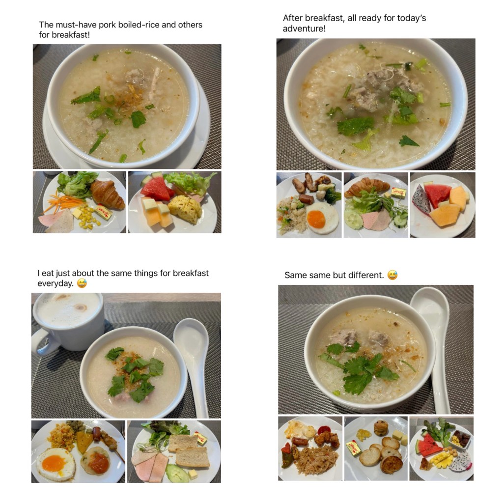 Hotel breakfast spreads are something I look forward to when breakfast is included with the stay, whether in Bangkok or elsewhere. On this trip, we stayed at ibis Styles Bangkok Sukhumvit 4, and their spread was not too bad. But, me being me, I ate the same things every day! I just loved the boiled rice offering.