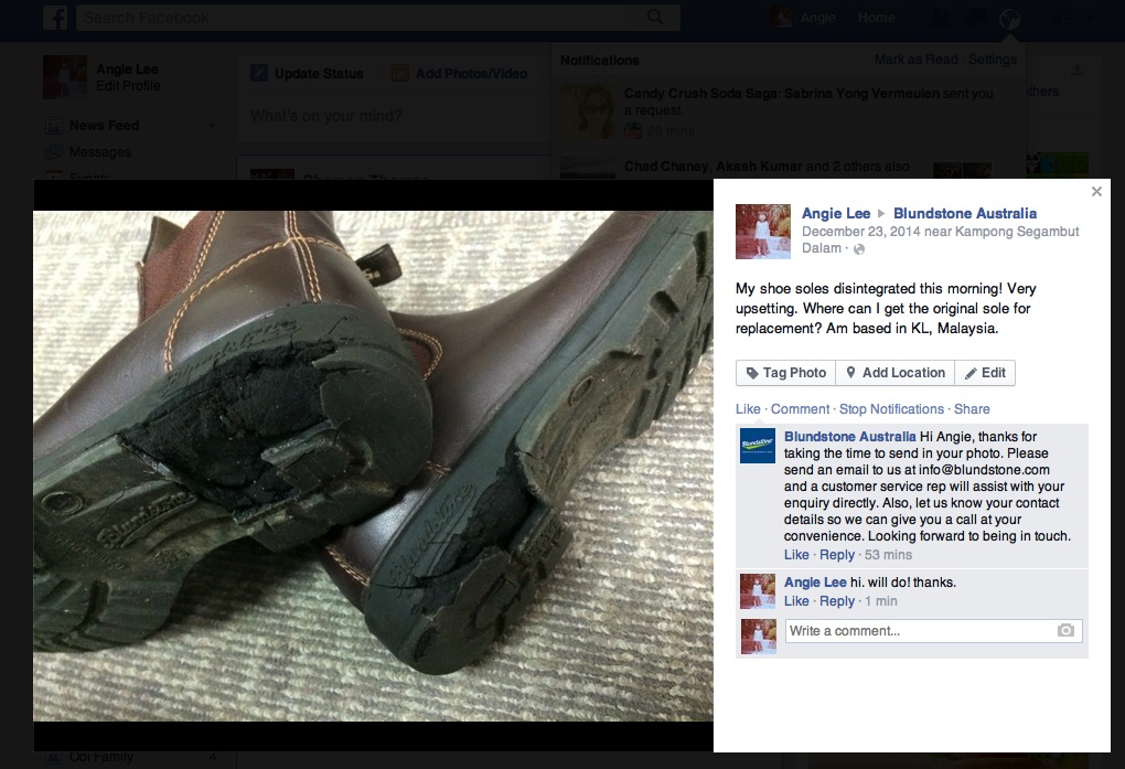 Also, I did write to Blundstone Australia to inform them that my boots experienced Hydrolysis. This time via Messenger privately and not publicly as a post on their Facebook wall.