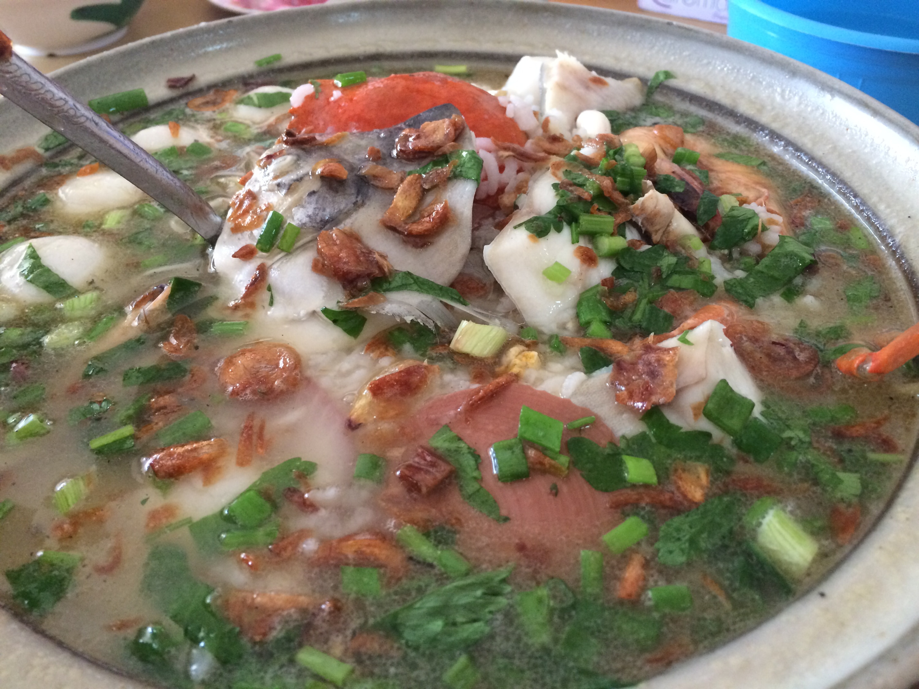 Laden with crab, prawns, fish, scallops and fishballs, best seafood porridge we had!